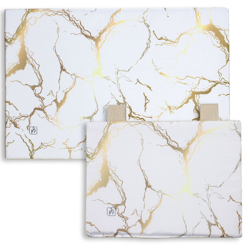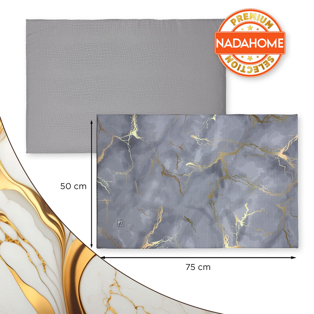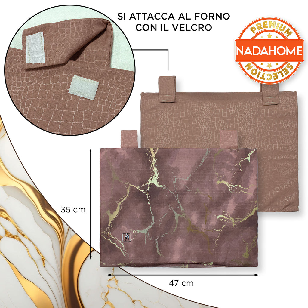 Dona un tocco di eleganza alla tua cucina con il set copriforno e coprifornelli imbottito effetto marmo. La stampa digitale marmorizzata con venature oro crea un look raffinato e moderno, trasformando il tuo piano cottura e forno in un vero elemento d’arredo.