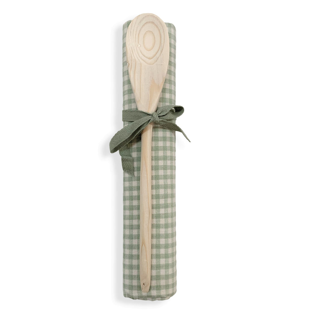 Set canovaccio stampato in puro cotone e mestolo in legno perfetti come idea regalo.