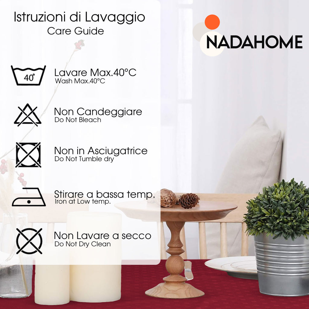 Pratica oltre che elegante, la tovaglia è lavabile in lavatrice, facilitando la manutenzione senza comprometterne la qualità o la bellezza. Confezionata con cura in una busta con chiusura clip, si presenta come un’ottima idea regalo o un prezioso pezzo da aggiungere al tuo corredo.