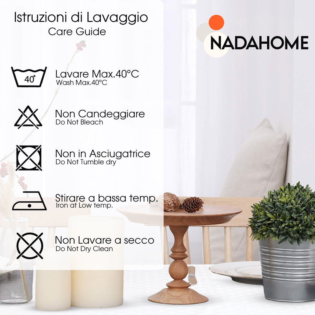 Pratica oltre che elegante, la tovaglia è lavabile in lavatrice, facilitando la manutenzione senza comprometterne la qualità o la bellezza. Confezionata con cura in una busta con chiusura clip, si presenta come un’ottima idea regalo o un prezioso pezzo da aggiungere al tuo corredo.