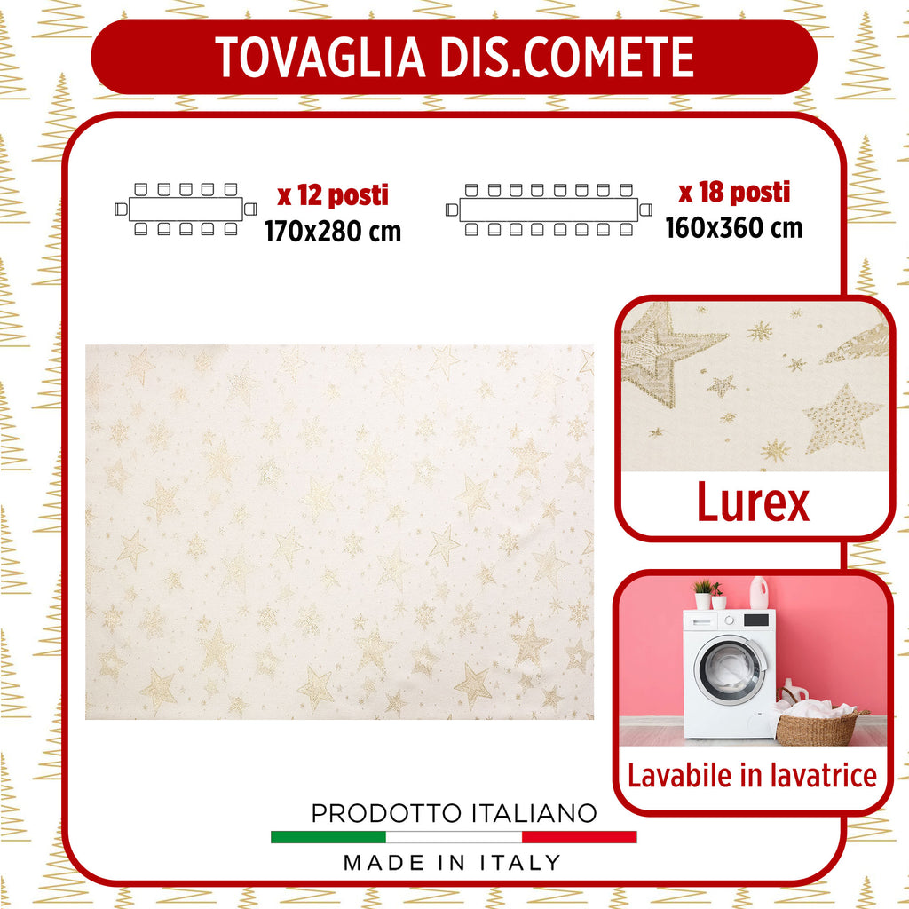 Tovaglia Natalizia glitter lurex Comete 12 posti Decoro di Natale in cotone 7154