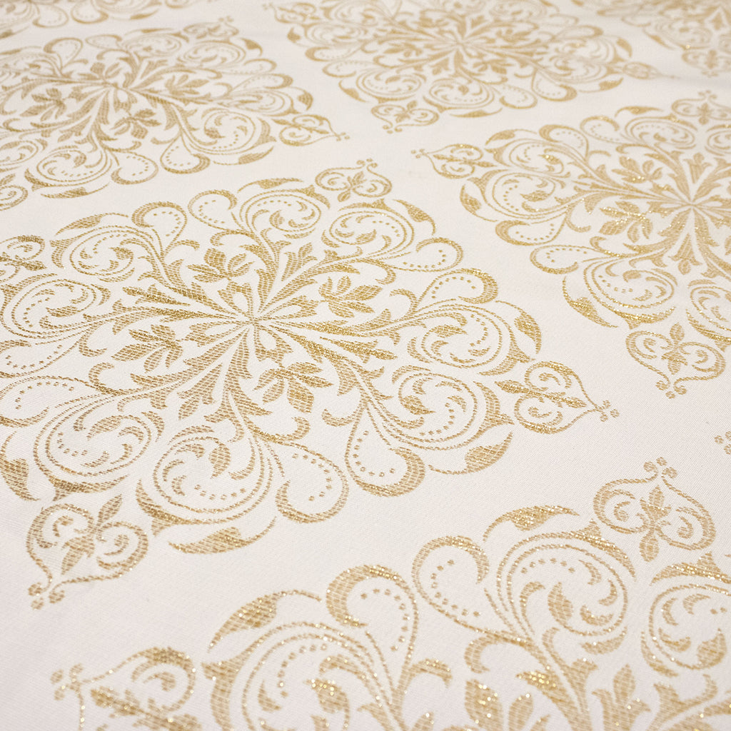 Il design è arricchito da ricami in lurex che percorrono l’intera superficie, raffigurando motivi festivi natalizi. I ricami brillano delicatamente, donando un tocco di eleganza e magia alla tua tavola, rendendola il punto focale di ogni occasione natalizia.