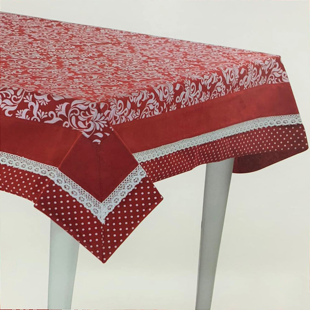 Tovaglia da tavola Natalizia Preziosa Home. Tovaglia in panama stampata con disegni natalizi e fasciata con pizzo.