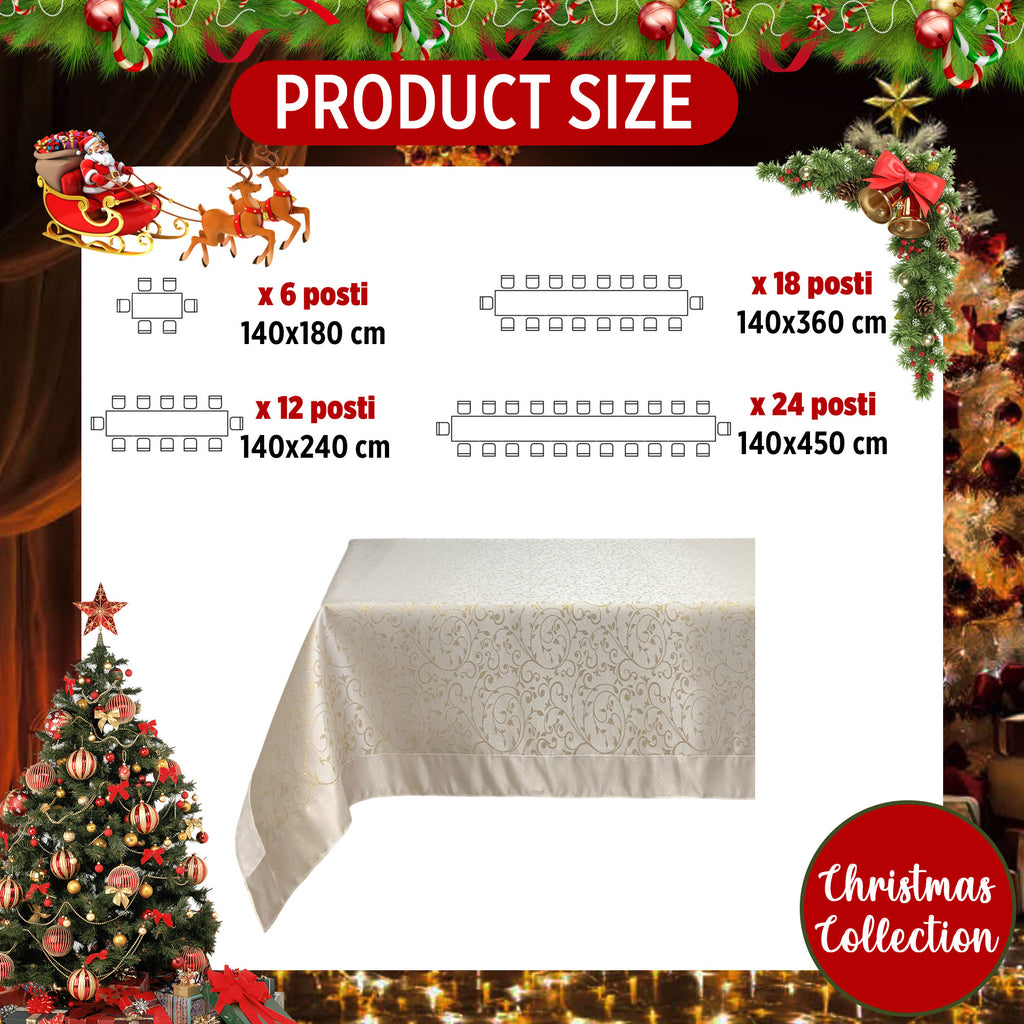 Lasciati avvolgere dall'atmosfera magica delle festività, accogliendo amici e familiari in un ambiente dove la bellezza e la praticità si fondono armoniosamente grazie alla tovaglia natalizia in jacquard con lurex antimacchia, idrorepellente, no stiro di Preziosa Home.