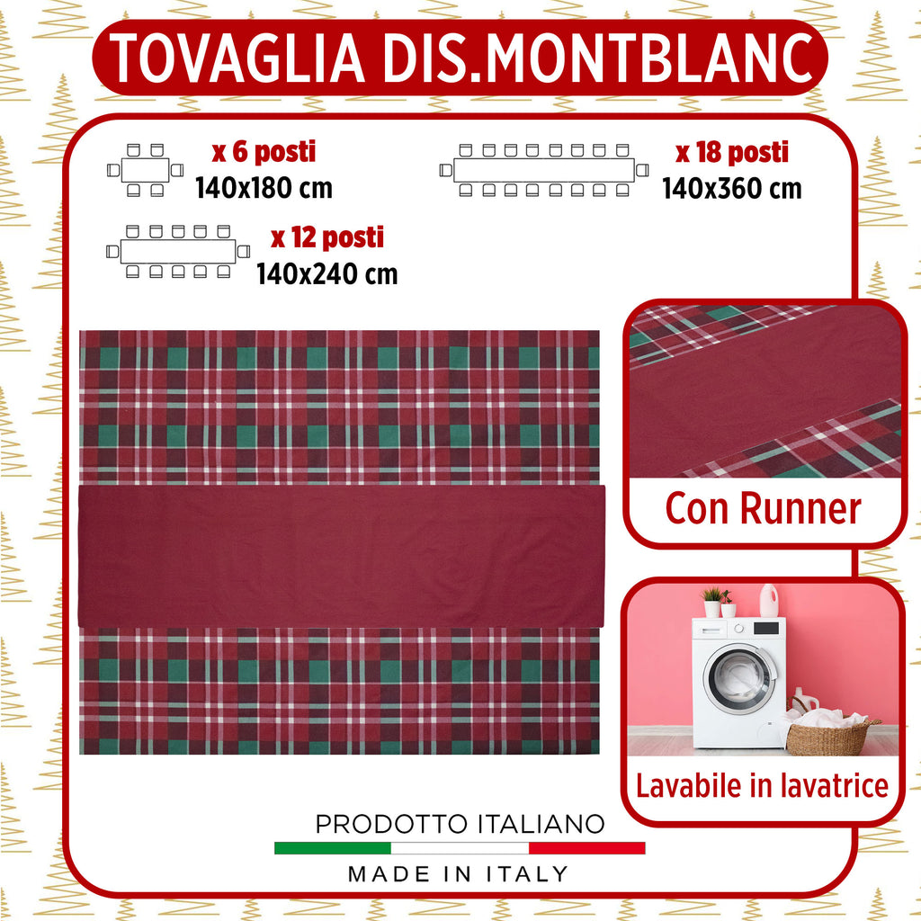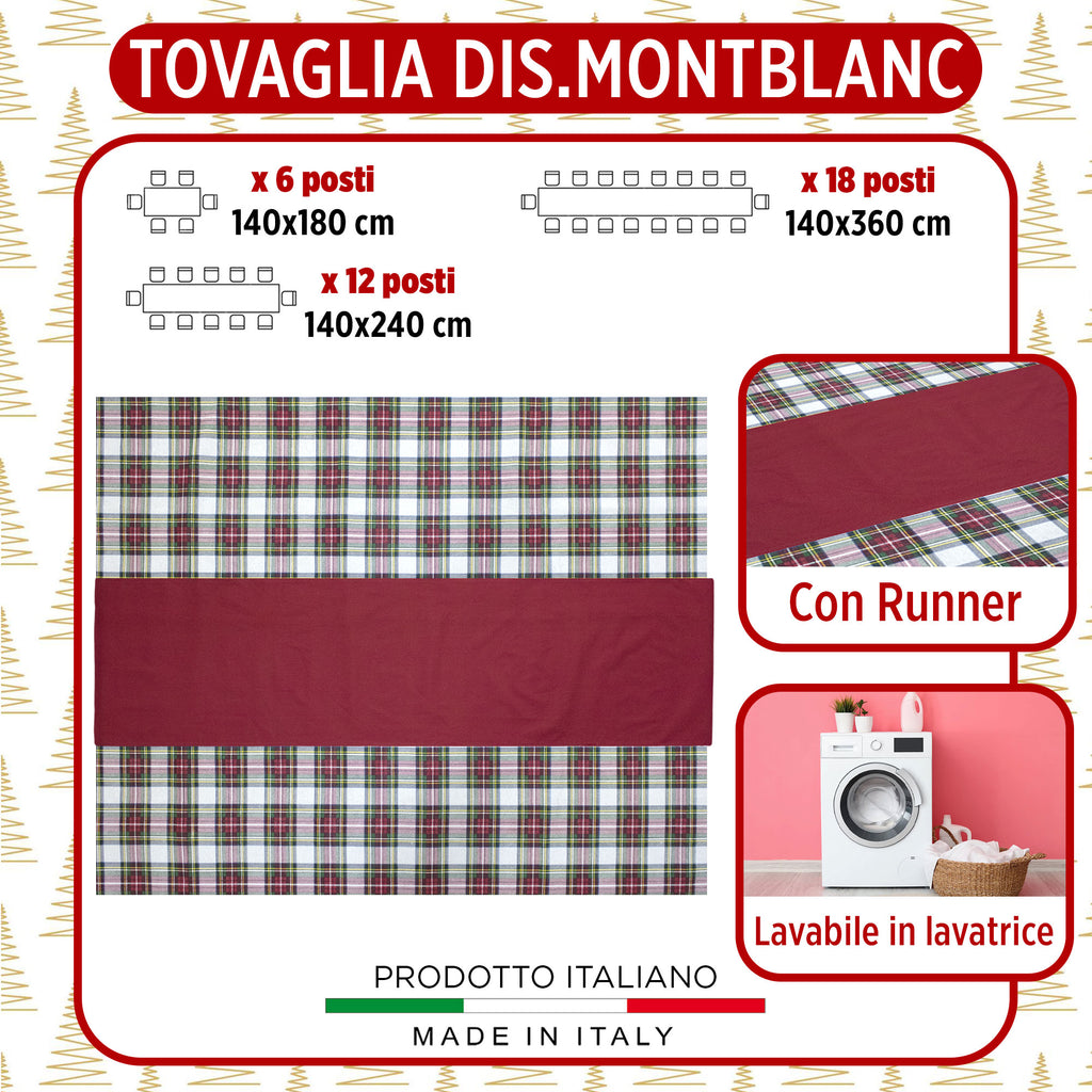 Dona alla tua tavola un tocco di eleganza natalizia con il nostro set tovaglia fantasia tartan, accompagnato da un raffinato runner tinta unita. Realizzata in Italia, la tovaglia è in loneta da 180gr, resistente e perfetta per accogliere amici e parenti durante le festività.