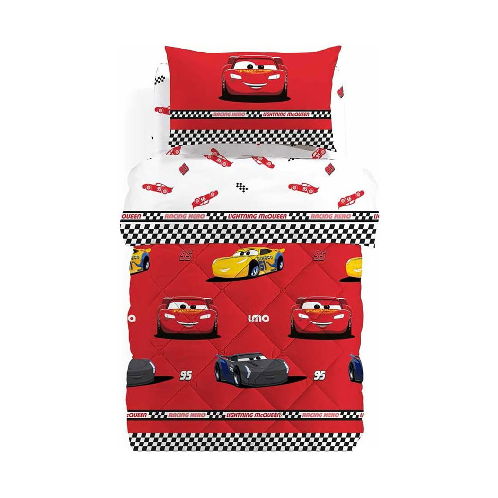 Cars Saetta è il protagonista della trapunta Caleffi ed accompagnerà il sonno dei vostri piccoli nelle notti più fredde.