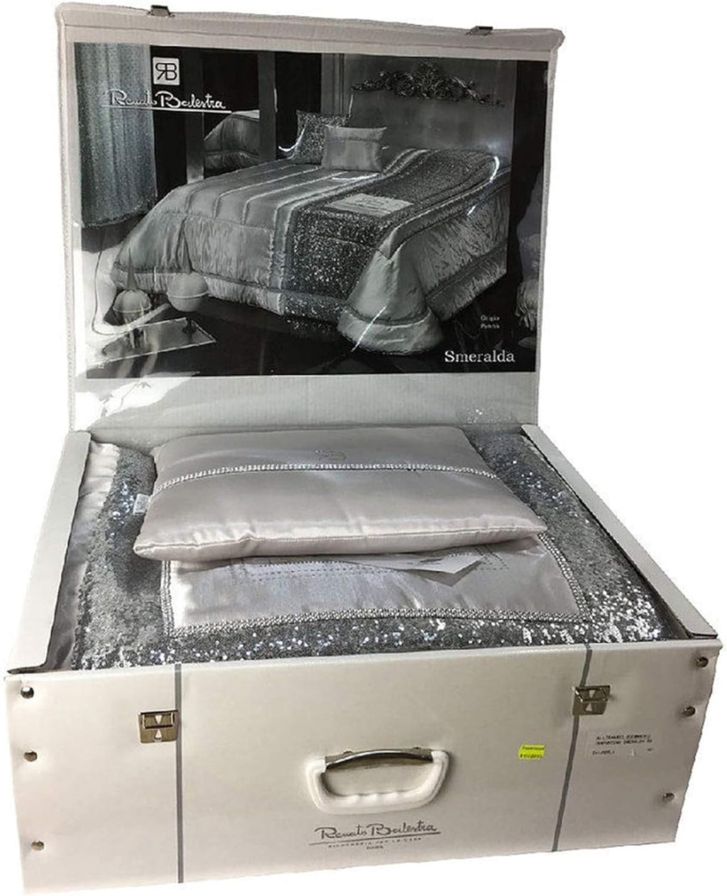 Ma le sorprese non finiscono qui! La confezione include anche due cuscini decorativi con strass, perfetti per completare l'arredo della tua camera da letto in modo elegante e coordinato.