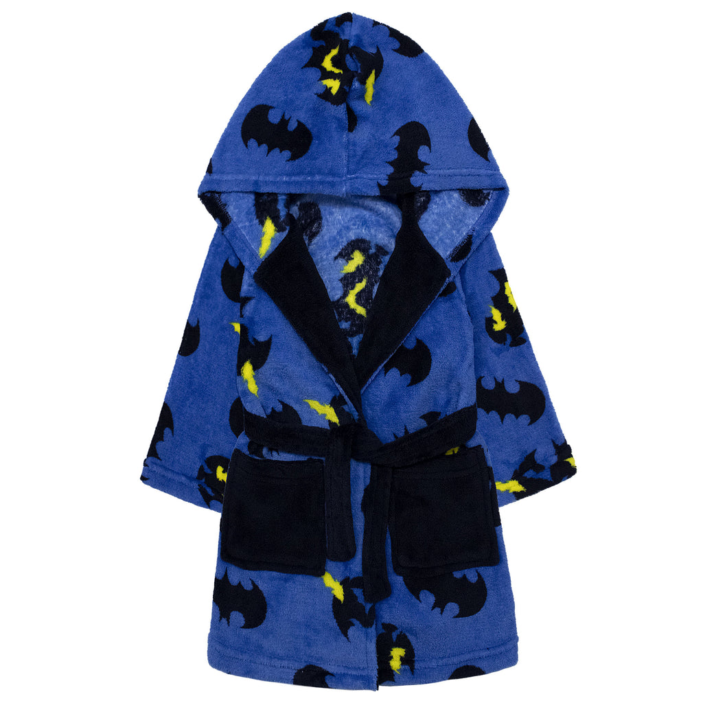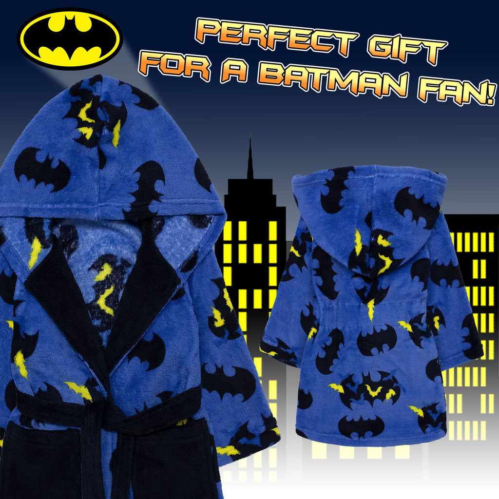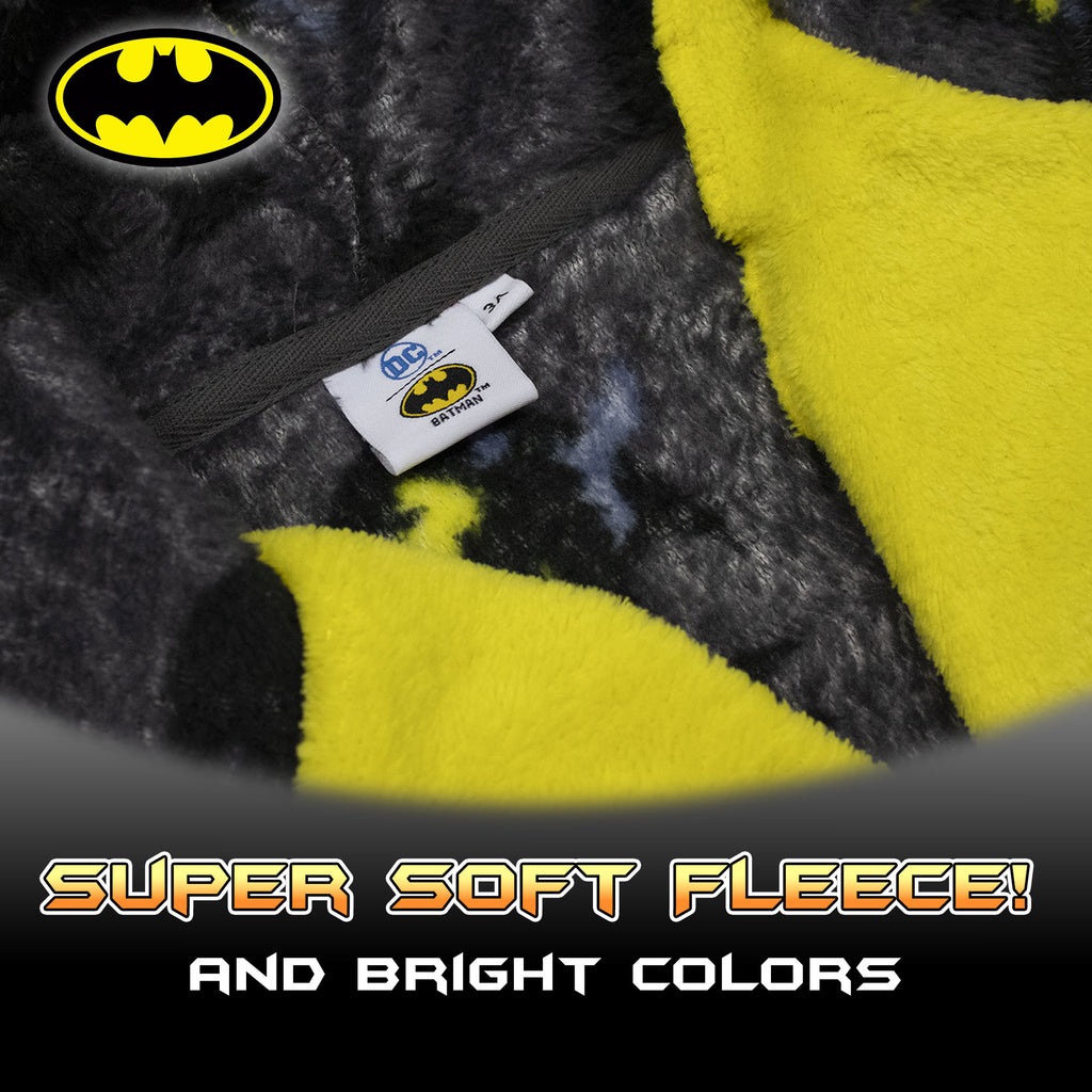 Avvolgi il tuo piccolo eroe nella calda e morbida vestaglia DC Comics Batman, perfetta per le fredde giornate invernali! Realizzata in pile coral fleece da 190 g/m², garantisce un comfort assoluto, ideale per rilassarsi in casa.